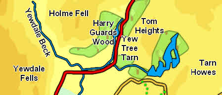Yew Tree Beck run south out of the tarn, and soon flows into Yewdale Back