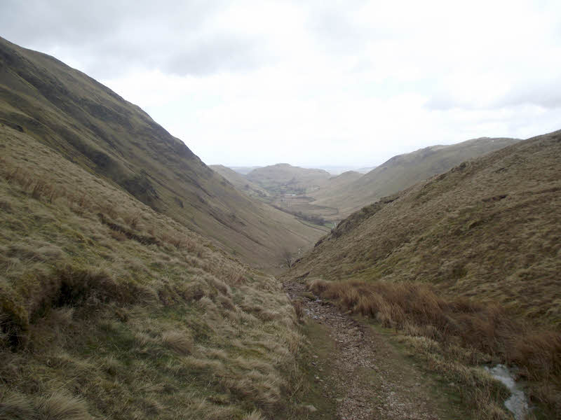 The view down Boredale from the edge of Boredale Hause, with Hallin Fell at the end of the valley.