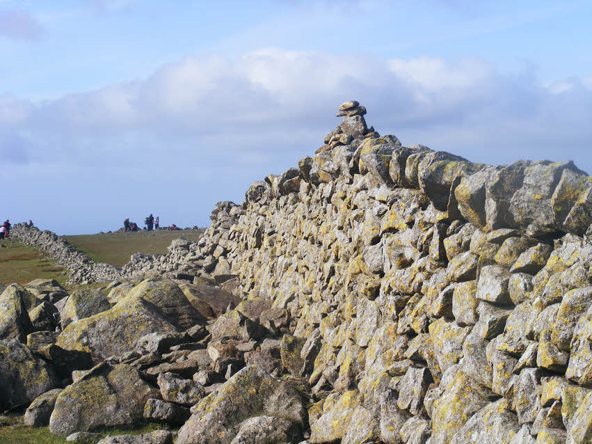 The summit cairn on Scoat Fell has been built on top of a stone wall that crosses the highest part of the fell.
