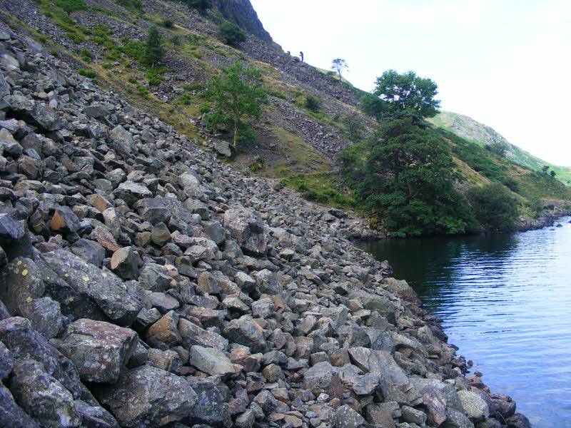 The western end of the Wasdale Screes, with a mix of grassy slopes and larger boulder fields.
