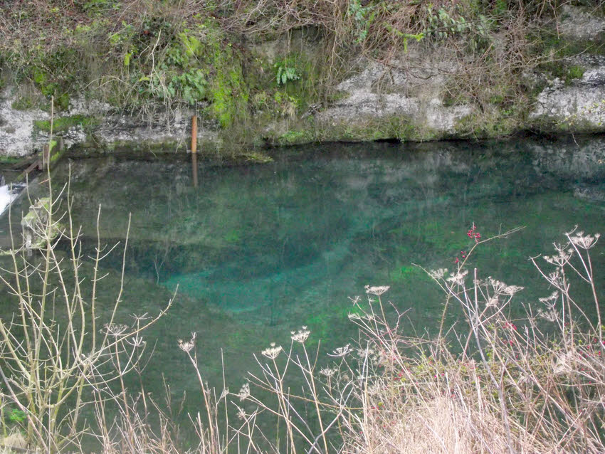 Looking down into the clear waters of one of the many pools created by weirs in the River Lathkill near Over Haddon.
