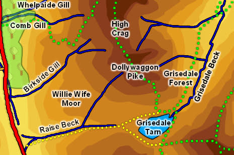 Grisedale Beck forms the eastern boundary of the fell,