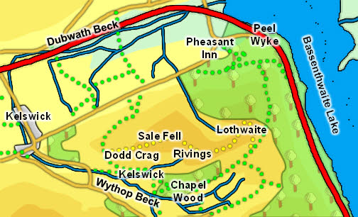 Sale Fell is an unobtrusive summit from most directions, but it does present an attractive face to drives heading east on the A66, who see its steep northern slopes, lines with paths and partly tree lined.