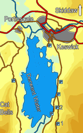 Key1: Lodore Wood viewpoint. A spectacular view over Derwent Water from an unexpected cliff top in the woods on the road to Watendlath. 2: Ashness Bridge. This is one of the most famous view points in the Lake District. Back to: Derwent Water - Lakes |