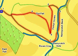 The upper reaches of Flat Fell may not be amongst the most exciting of summits, but the fell is bordered to the east by the very attractive valley of Nannycatch Beck, while Flatfell Screes and the rock formations above them can easily be visited from above and below on a satisfying circuit. The summit itself is a nice place to be on a sunny day, with decent sea views, but this walk isn't suited for a foggy day as the section above the crags lacks a really clear path.